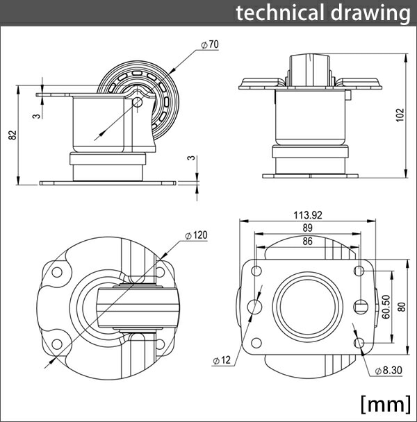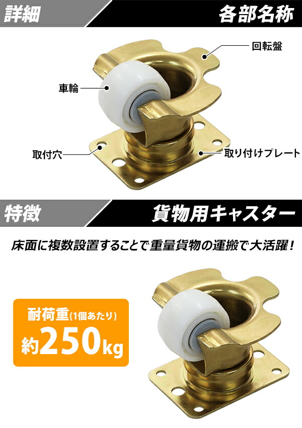 キャスター 上向き 自在キャスター 重量用 ナイロン製 4個セット 航空貨物キャスター 耐荷重約250kg(1個あたり) 車輪直径約58mm 幅約34mm 航空貨物用 重量用キャスター 貨物キャスター 貨物用キャスター 航空 空港 自在車 ナイロン車輪 運搬 acstrnyfr820t4p