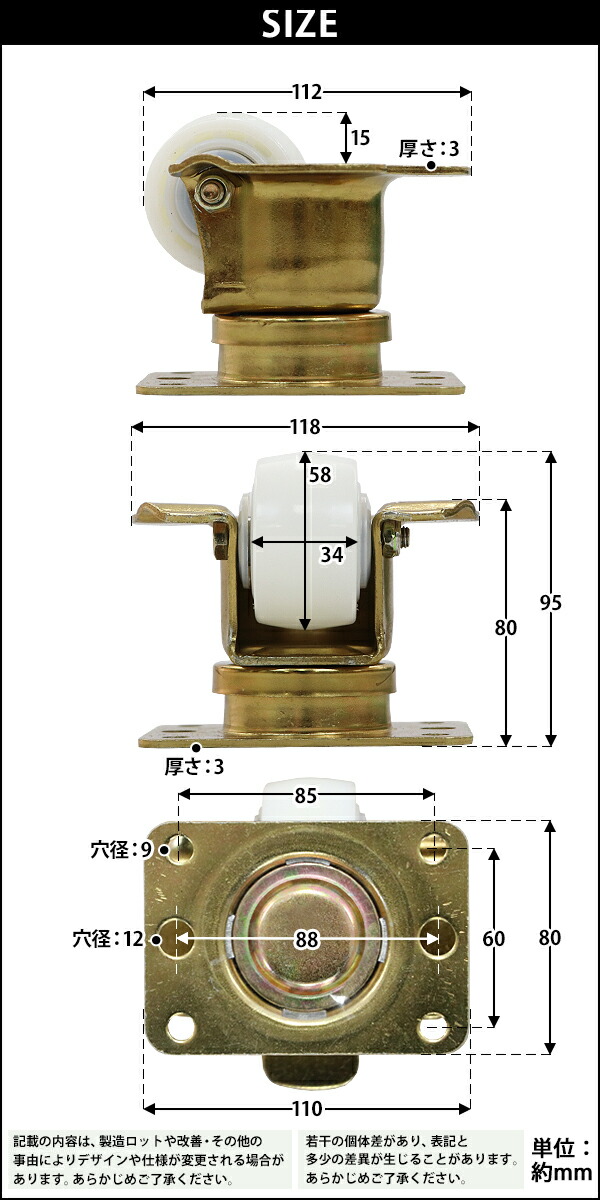 | 材質 | 亜鉛メッキスチール(金具)、ナイロン(車輪) |