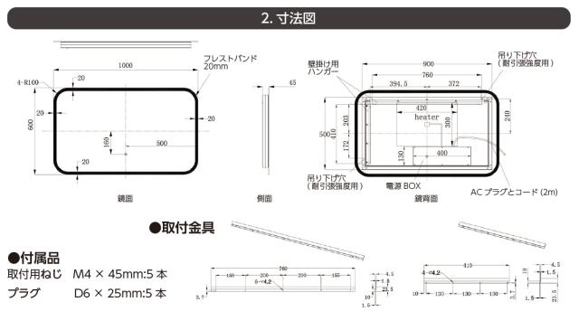 LEDミラー 大型ミラー 曇り止め機能付き 電気工事不要 コンセントに差し込むだけで簡単設置 安心安全のPSE認定品 壁掛け 洗面台 洗面鏡 化粧室 メイクルーム 美容室 ヘアサロン メイクサロン おしゃれ ハイセンス シンプル モダン lm 宅配のみ
