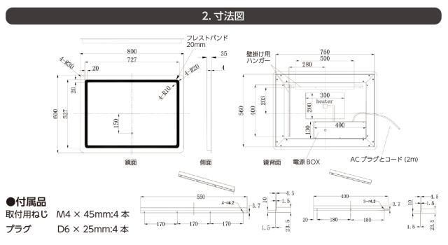LEDミラー 大型ミラー 曇り止め機能付き 電気工事不要 コンセントに差し込むだけで簡単設置 安心安全のPSE認定品 壁掛け 洗面台 洗面鏡 化粧室 メイクルーム 美容室 ヘアサロン メイクサロン おしゃれ ハイセンス シンプル モダン lm宅配のみ