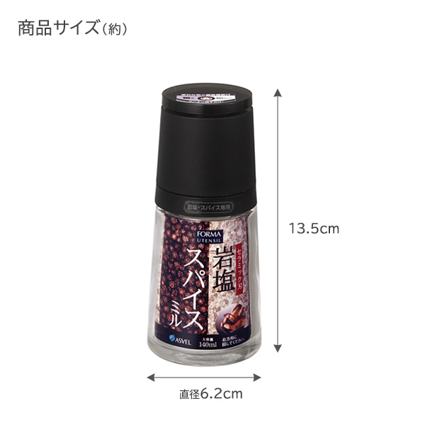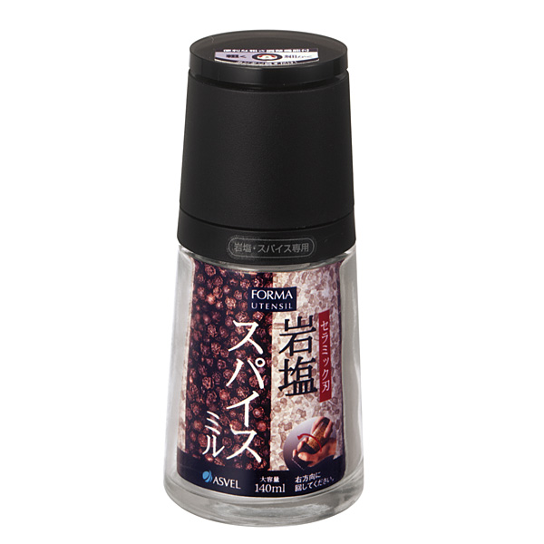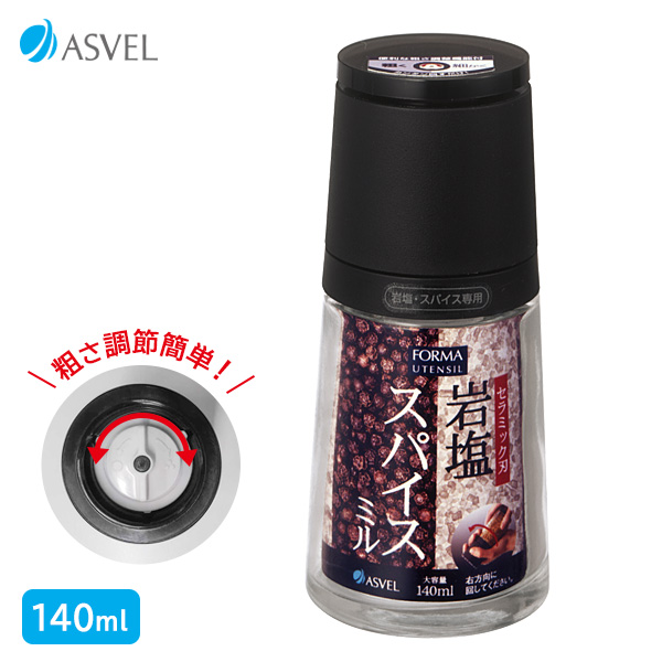 スパイスミル フォルマ セラミックミル 岩塩・スパイス専用 ブラック A2120 | ペッパーミル 胡椒 山椒 岩塩 セラミック刃 粗さ調節 調味料 ボトル キッチン小物