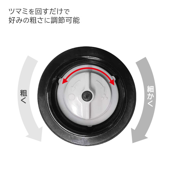 粗さ調整簡単調節ツマミを回すだけで、料理や好みに合わせた粗さの調節ができます。