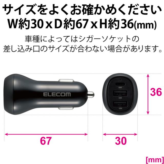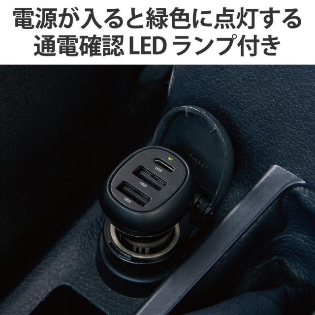 シガーソケット カーチャージャー 36W 3ポート USB Type-C ×1 USB A ×2 PD対応 超高速充電 おまかせ充電 iPhone Android 各種対応 車 充電器 ブラック MPA-CCPD06BK ELECOM(代引不可)【送料無料】