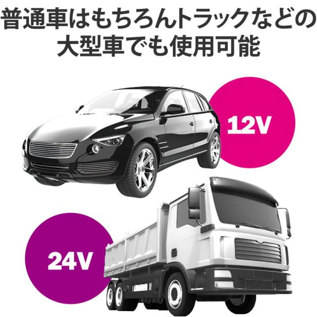 ■12V/24V入力に対応し、普通車はもちろん、トラックなどの大型車でもご使用になれます。