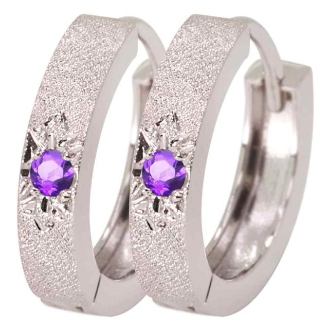 2月誕生石アメジストを使用したプラチナ製の、レディースフープピアスです。