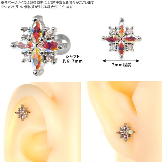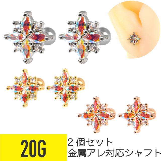 マルチカラー スターライト ストレートバーベル 両耳用 2個セット 20g サージカルステンレス ジュエル シルバー ゴールド ピンクゴールド イヤーロブ ヘリックス コンク 軟骨ピアス ボディピアス 多色 CZ 結晶