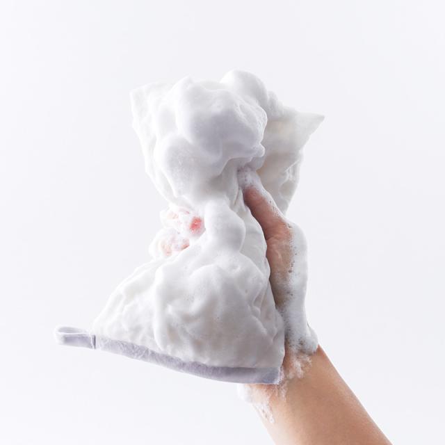 洗面台でお顔を洗う際に適したコンパクトサイズ。絹の細かい繊維により、きめ細かく弾力のある泡が簡単につくれます。できた泡を手に取ってお顔を洗うのはもちろん、気になる部分を直接撫でることで、角質化した肌や余分な脂分をやさしく取り除くことができます。