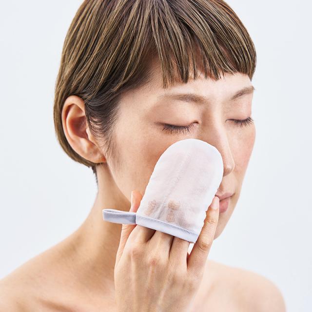 手にかぶせて撫でるだけで簡単に角質ケアができるミトンタイプ。ざらつきが気になる部分の定期的なケアがストレスなく行なえます。おでこや小鼻まわりなど、お顔に適したコンパクトサイズです。