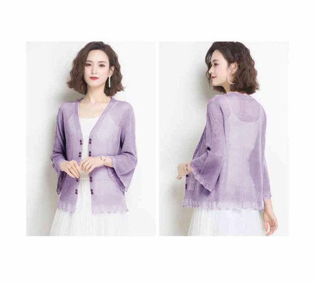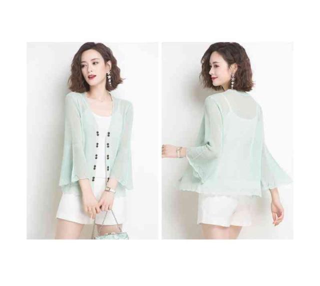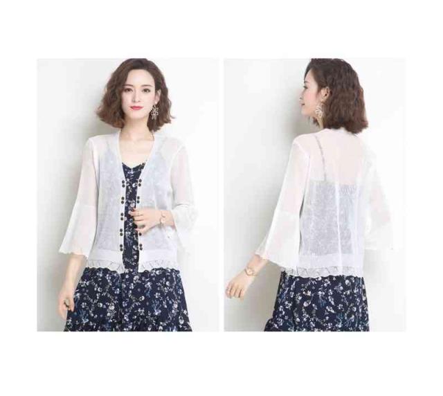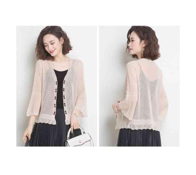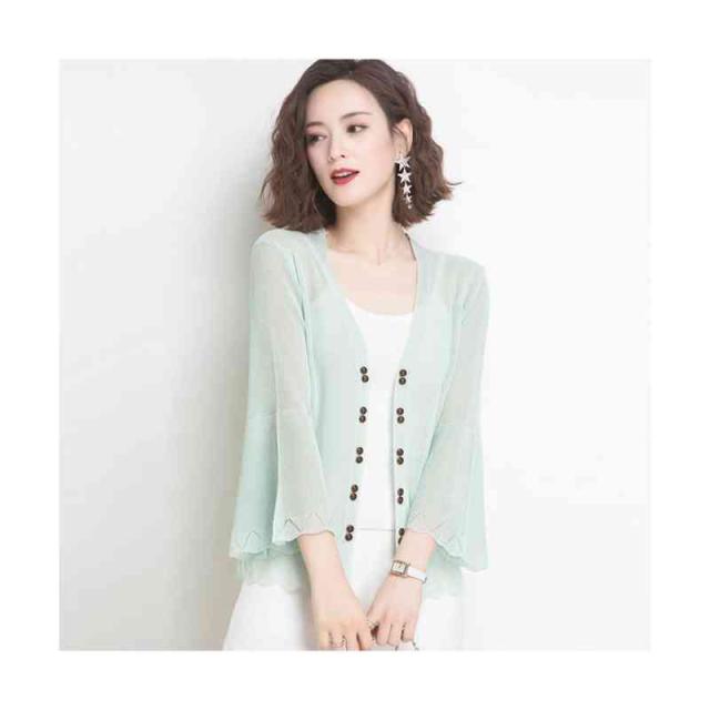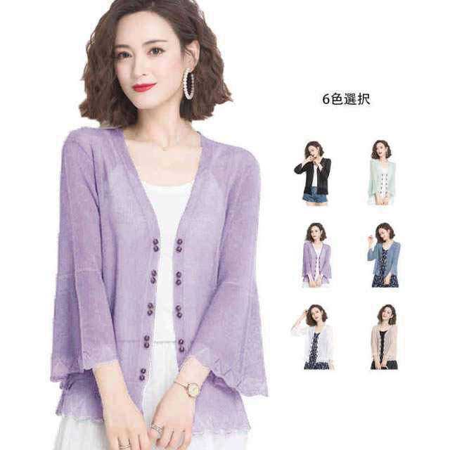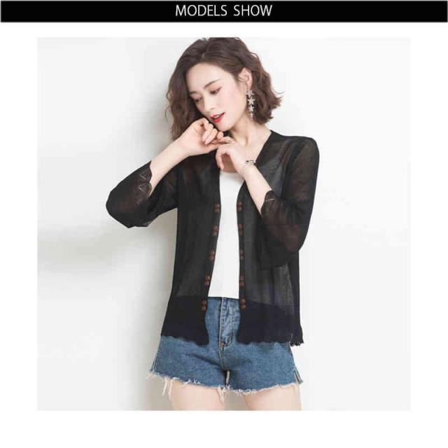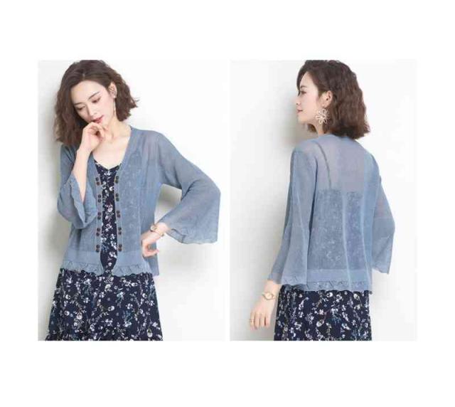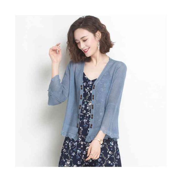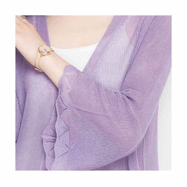 Vネック サマーニット カーディガン レディース 夏 フリルカーディガン ゆったり ファッション 9分袖 ショート サマーカーディガン シアーカーディガン ゆったり 薄手 羽織り 夏アウター UVケア 透け感 体型カバー 送料無料