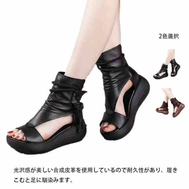 厚底サンダル レディース サマーブーツ ショートブーツ ブーツサンダル レザーブーツ レディース アンクルブーツ ミドルブーツ 歩きやすい 痛くない ジッパー カジュアル 柔らか 厚底 夏靴 カジュアル 通勤 通学 サンダル