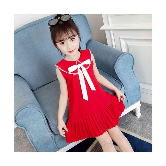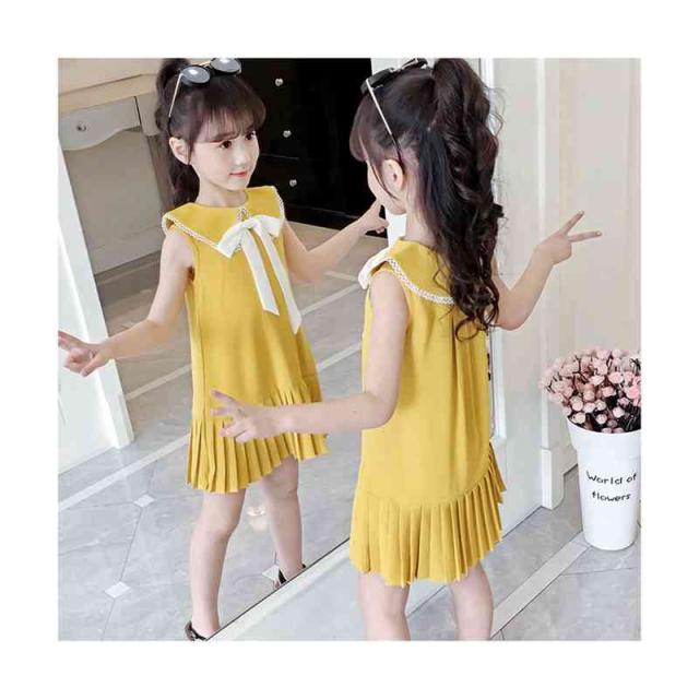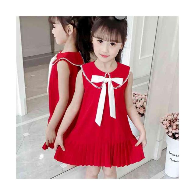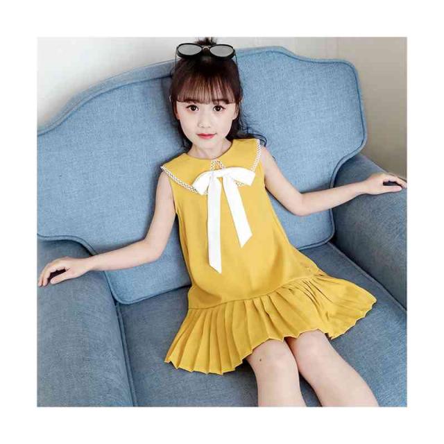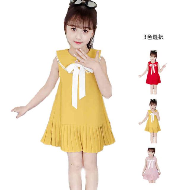 リボンワンピ キッズ シフォンワンピース ノースリーブ 丸襟 シフォン ロングワンピース フリルワンピース プリーツワンピース リボン 無地 シンプル カジュアル おしゃれ 女の子 子供服 送料無料 おでかけ