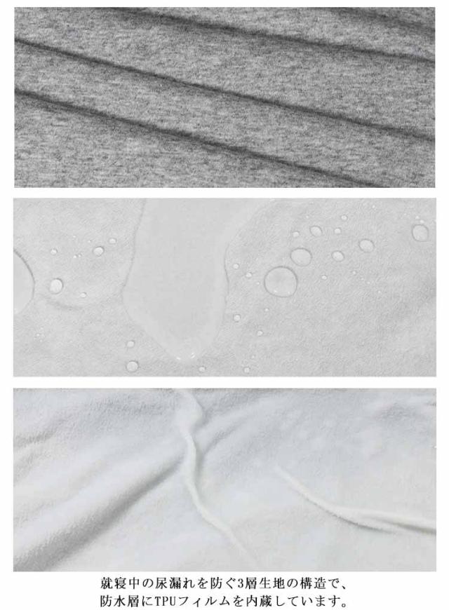 | 夜のモレ対策をしても心配でお困りの方には安心感のある防水介護パンツです。 尿をすばやく吸収し、すばやく外側に発散。 べたつかずにいつでもサラサラでさわやか! 五分丈、七分丈、ロング丈の3タイプが用意しており、年中活躍します。 就寝中の尿漏れを防ぐ3層生地の構造で、防水層にTPUフィルムを内蔵しています。 股上 股下 それぞれ長く作っていますので、万が一の染み出しは、ガードします。 失禁の布団洗濯に困っている皆さんにお勧めしたいです。 | |