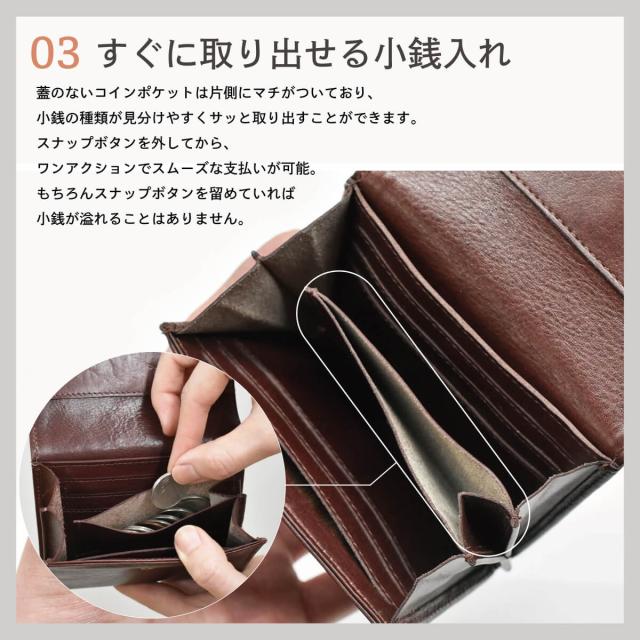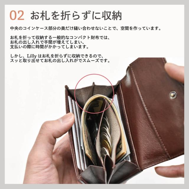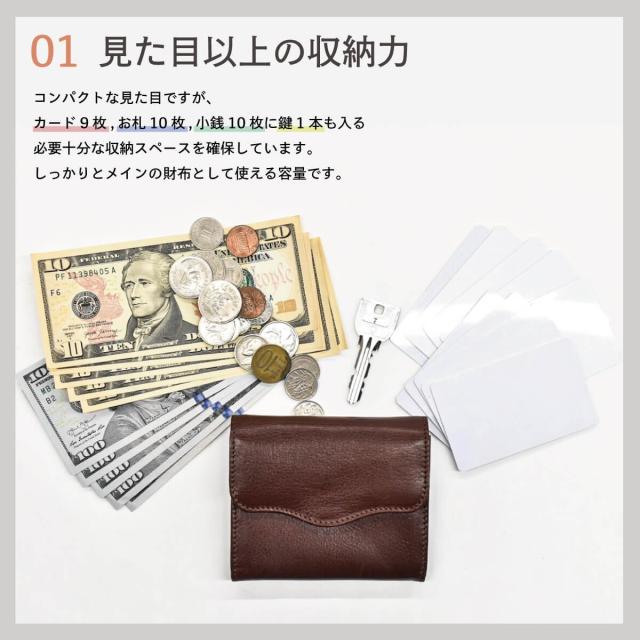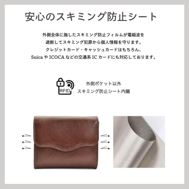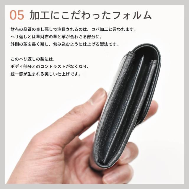 また、全面ヘリ返しをして断面が見えないように美しいデザインに仕上げました。 機能性に加えて、コンパクトさ・容量・軽さ・薄さ・安全性の5つの条件を満たし、 さらに素材・耐久性・デザイン性にもこだわっており、理想のコンパクト財布としてお使いいただけます。