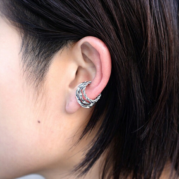 テクスチャの異なる3本のフープをまとめたボリューム感あるイヤカフ。