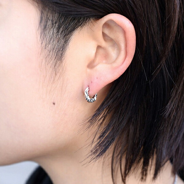 (有名ブランド/国産ブランド/人気/アクセサリー/プレゼント/おしゃれ/メンズアクセサリー/レディースアクセサリー/ギフト/シルバー950/シルバーアクセサリー/銀/SV950/メンズピアス/シルバーフープピアス/メンズフープピアス/シンプル/波/ウェーブ/模様/スタッド)