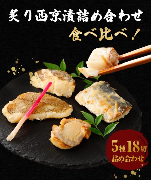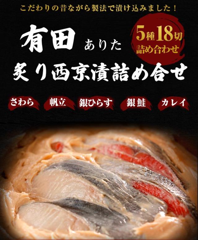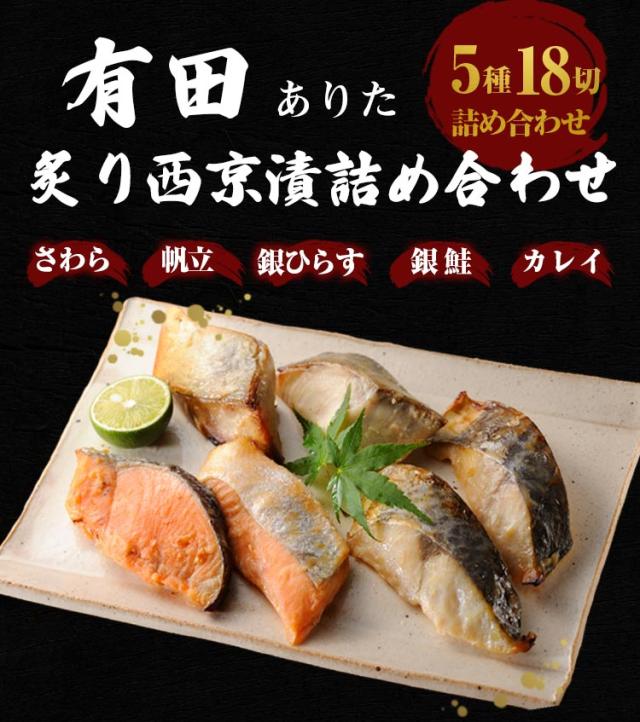 炙り 西京漬け 送料無料 詰め合わせ 5袋 (計18切) ギフト 有田 竹八 西京焼き 味噌漬け 西京味噌 売れ筋 魚 鮭 お土産 お返し 女性 祝い 海鮮 セット お取り寄せ グルメ 高級 贈答用 食品 プレゼント 発酵食品 京都 サーモン おつまみ たっぷり 大容量 [産直]