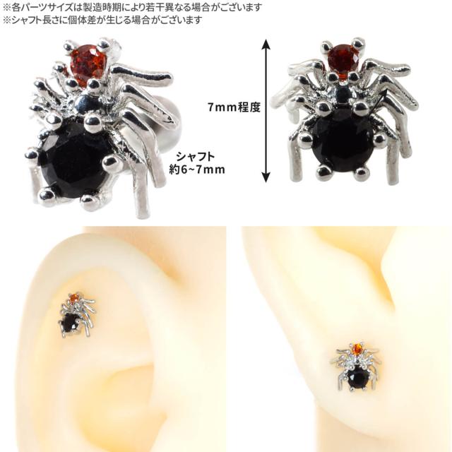 クモ スパイダー ストレートバーベル 14G 16G 18G 20G サージカルステンレス ジルコニア ジュエル シルバー ブラック イヤーロブ ヘリックス コンク 軟骨ピアス ボディピアス クモ スパイダー