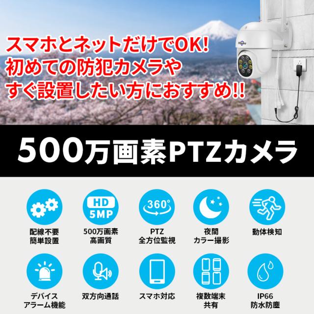 防犯カメラ 屋外 防犯カメラ屋外 ワイヤレス 工事不要 家庭用 監視カメラ 小型 自動追跡 録画機能付き 500万画素 パンチルト ネットワークカメラ カメラ Wi-Fi スマホ 連動 防水 遠距離 屋内 室内カメラ