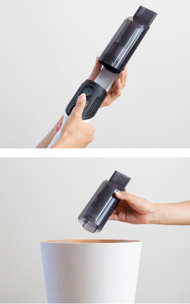 ボタン一つでダストケースを取り外すことができます。ゴミに直接手を触れなくてよいので衛生的です。