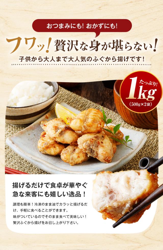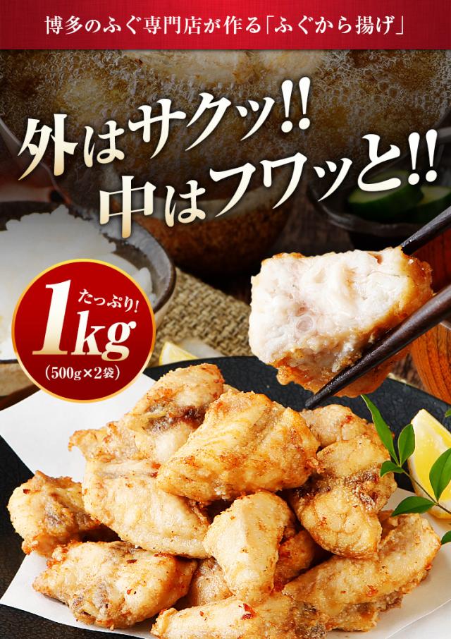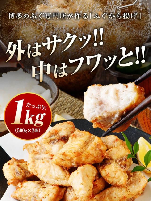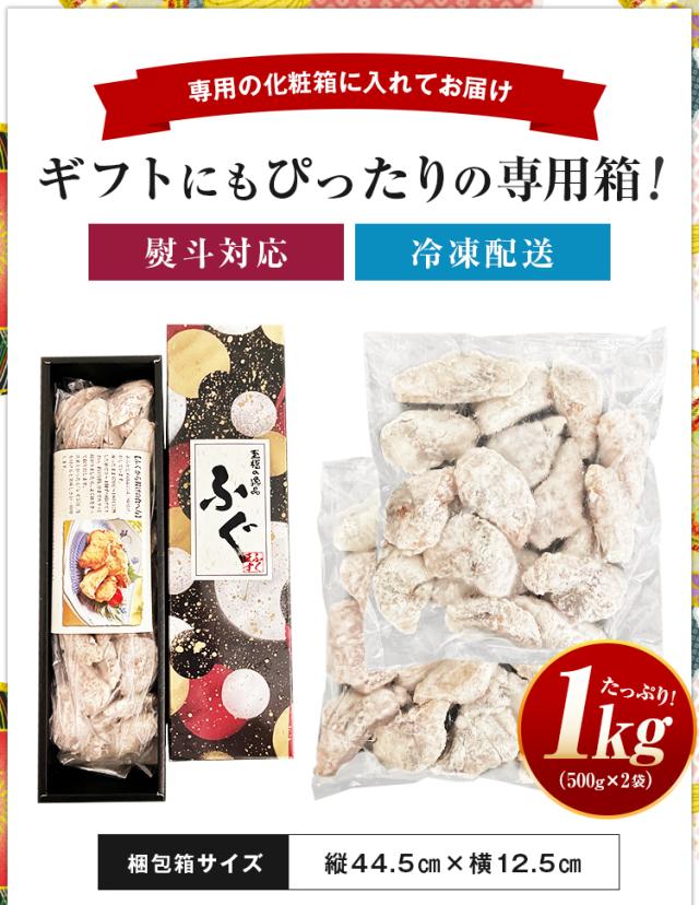 ふぐ 博多 ふぐ唐揚げ セット 1kg (500g×2) ギフト 送料無料 からあげ 天然ふぐ 化粧箱 河豚 プレゼント 贈り物 食品 祝 お取り寄せグルメ 海鮮 高級 のし可 お返し 食品 旬 急速冷凍 お歳暮 冬 [フグ]