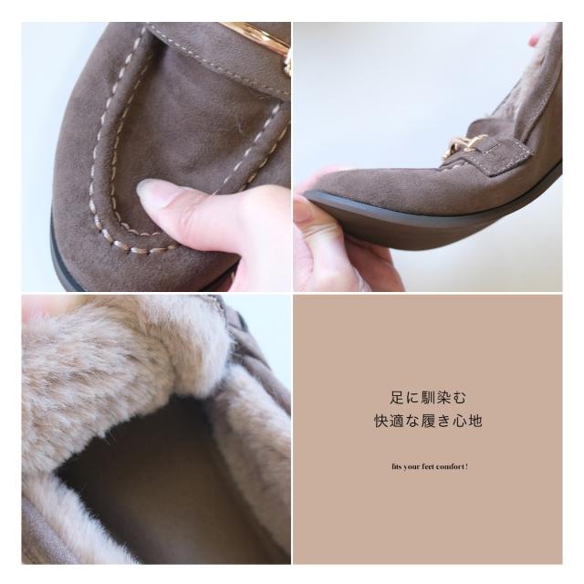 ローファー 履きやすい 歩きやすい ファー ビット付き 1.3センチヒール 痛くない レディース あったか ぺたんこ 秋冬 アニマル柄 カジュアル トラベル 旅行 ローヒール 防寒 送料無料 MJ4414 アミアミ あみあみ amiami