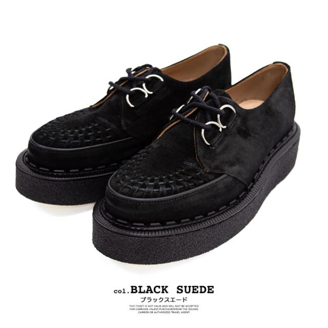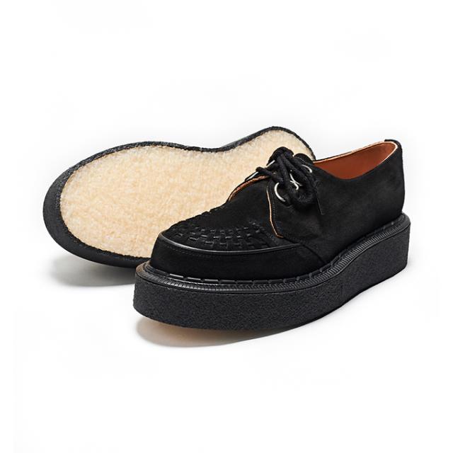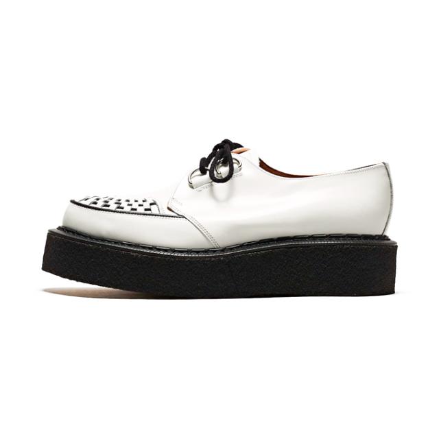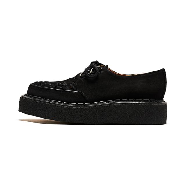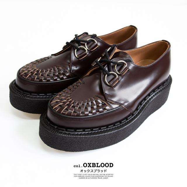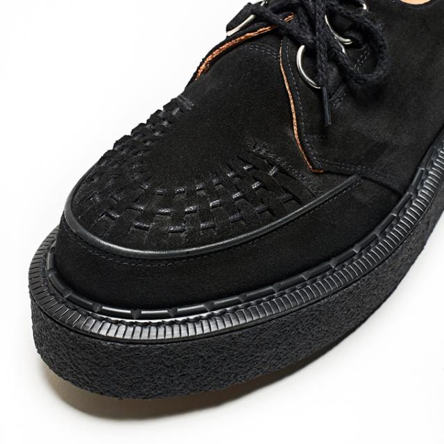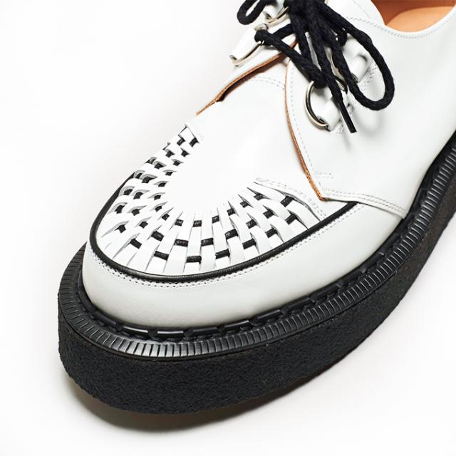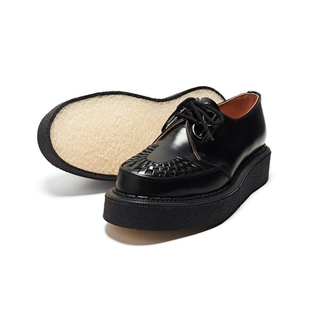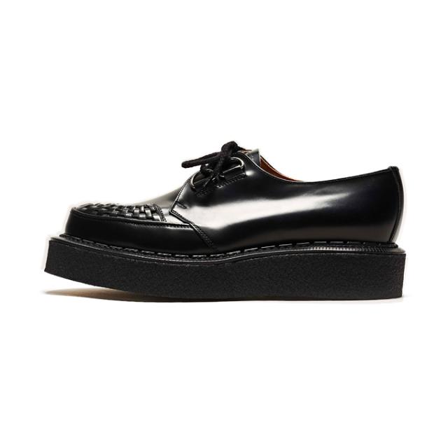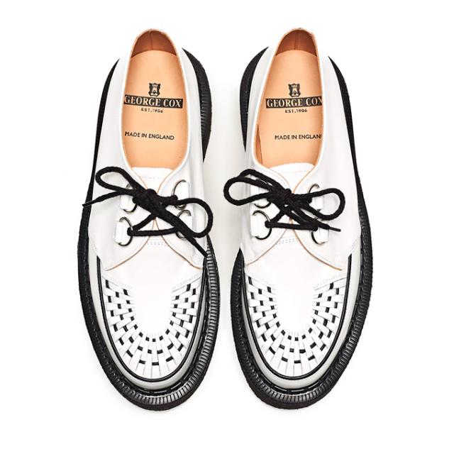 GEORGE COX(ジョージコックス)の定番ラバーソール クリーパーズの名でも知られ、GEORGE COXの代名詞の一つであるSKIPTONは、インターレースと呼ばれる甲の部分の編みこみデザインが最大の特徴。 |