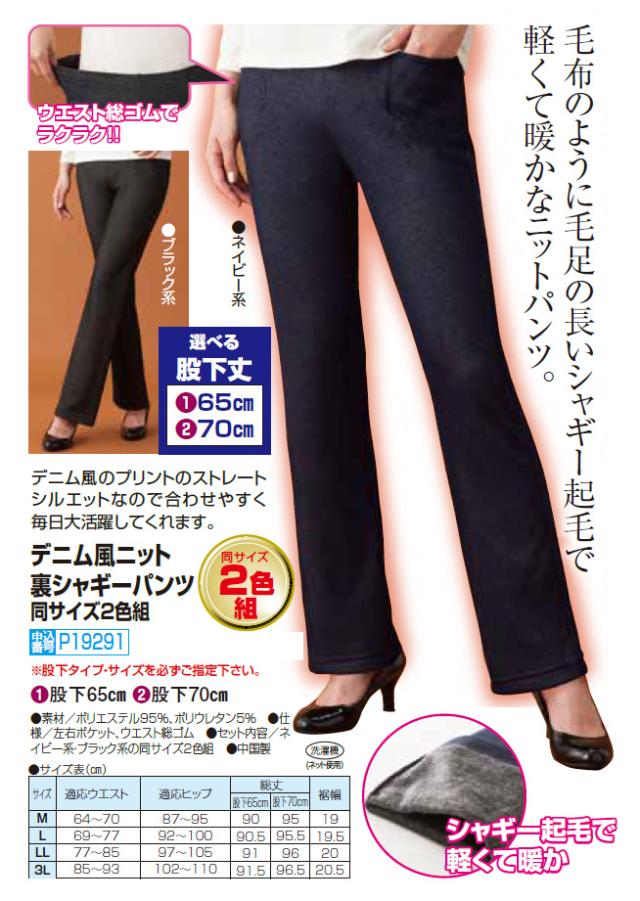 秋冬 デニム風ニット裏シャギーパンツ(2色組) 選べる股下丈 ズボン レディース 婦人服 ミセス シニア デニムパンツ 裏起毛パンツ シニアファッション 50代 60代 70代 80代 母の日 お母さん natu p19291