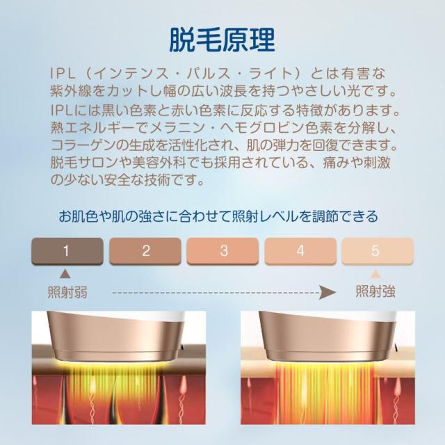 【光脱毛器】家庭用光美容器はサロン級の光技術を採用しており、光電原理ので安心なフラッシュパワーで効率的に奥まで届けます。