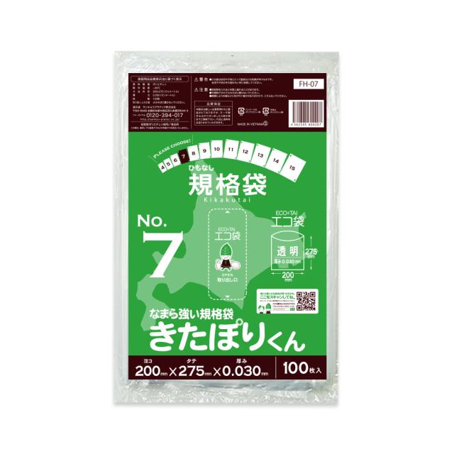 【バラ販売】FH-07bara 北海道規格 ひもなし 規格袋 7号 0.030mm厚 透明 100枚 きたぽりくん 食品検査適合 RoHS指定