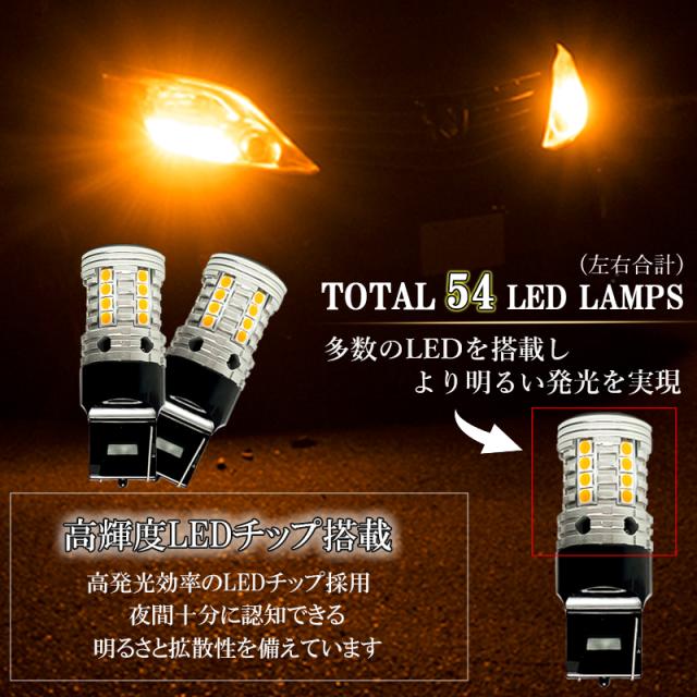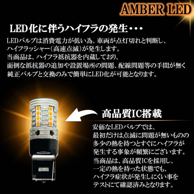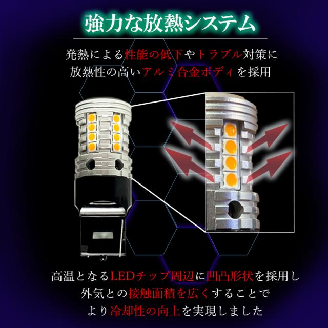 LEDウインカー T20 ハイフラ 防止 抵抗 内蔵 T20ピンチ部違い 爆光型 バルブ 左右 2個 セット 明るい LED ウィンカー ステルス アンバー オレンジ キャンセラー内蔵 7440 後付け 交換 取付け 冷却 フロント リア
