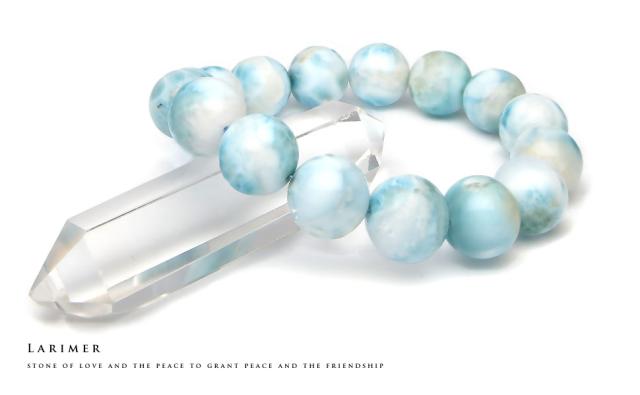 碧い空と海の色を持つパワーストーン、ラリマーの石を眺めていると不思議と心が安らぎ穏やかな気持ちになってくるのが感じられます。毎日が忙しくてストレスを抱えている時、悲しいことや嫌なことがあった時、精神的な癒しを求めている時に、ぜひ持っていただきたいパワーストーンです。ラリマーは非常に高いバイブレーションをもつと人気のパワーストーンです。自分も他人も受け入れることを可能にし、コミュニケーション能力を高めるとされます。人間関係を円滑にし、愛情と思いやりに満ちた関係を深めるよう助けてくれるでしょう。日々のストレスや、避けられない変化に直面したときに、それにともなう苦痛や困難を軽減し、前向きな力を与えてくれるでしょう。