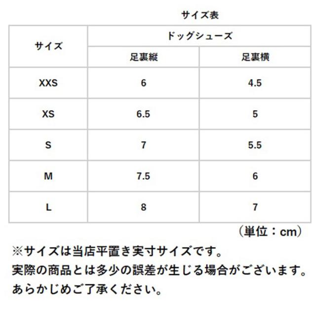 | サイズ | [ドッグシューズ] ・XXSサイズ ・XSサイズ ・Sサイズ ・Mサイズ ・Lサイズ ※サイズについて詳細は、サイズ表をご覧くださいませ。 |