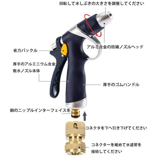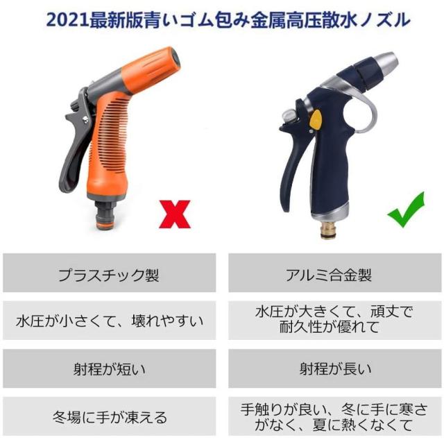 【最新版散水ノズル】2021年に新たにアップグレードしたあおいゴム付き金属散水ノズルが登場。本体は高品質のアルミニウム合金と銅で作られ、外側はゴムに包まれ、高級感溢れて、手触りが良い。使い心地が良くて冬には手に寒さもなく、夏に熱くもない。
