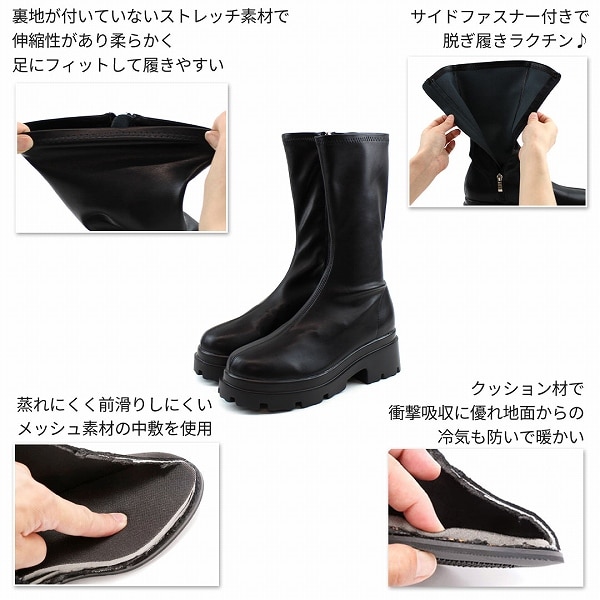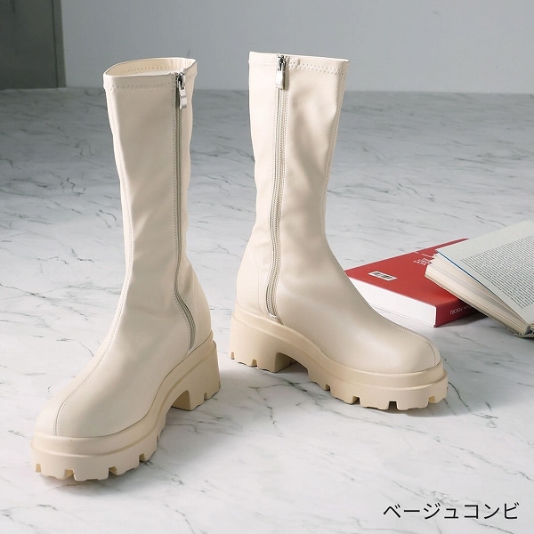 厚底ストレッチミドルブーツ