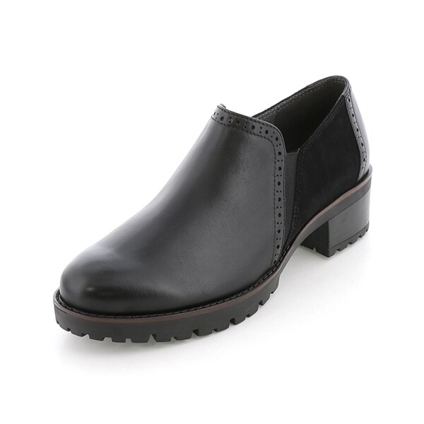 メンズライクな辛口シルエットに、サイドゴアとメダリオン飾りのアクセントをプラス。
