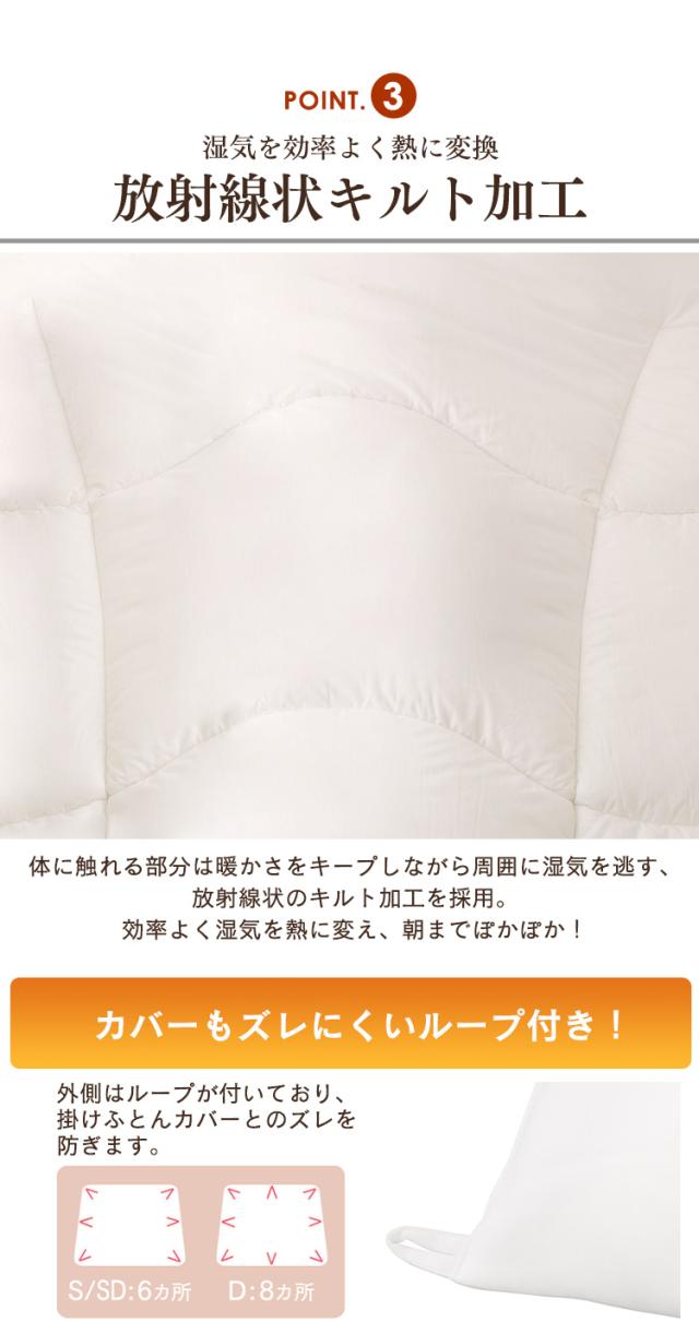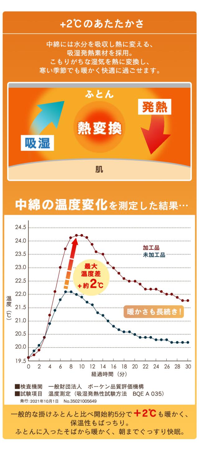 中綿には水分を吸収し熱に変える、吸湿発熱素材を採用。