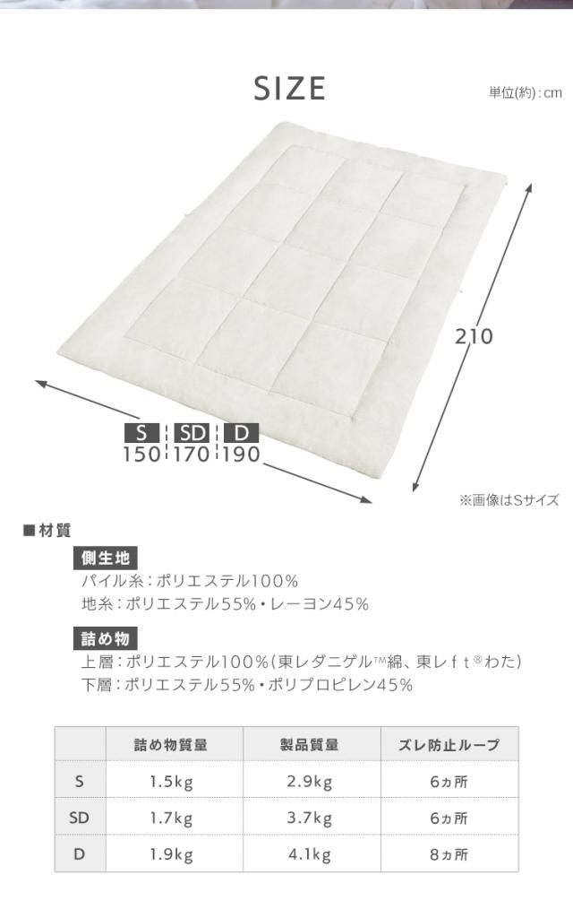 <詰め物>上層:ポリエステル100%(東レダニゲル™綿、東レft®わた)、下層:ポリエステル55%・ポリプロピレン45%