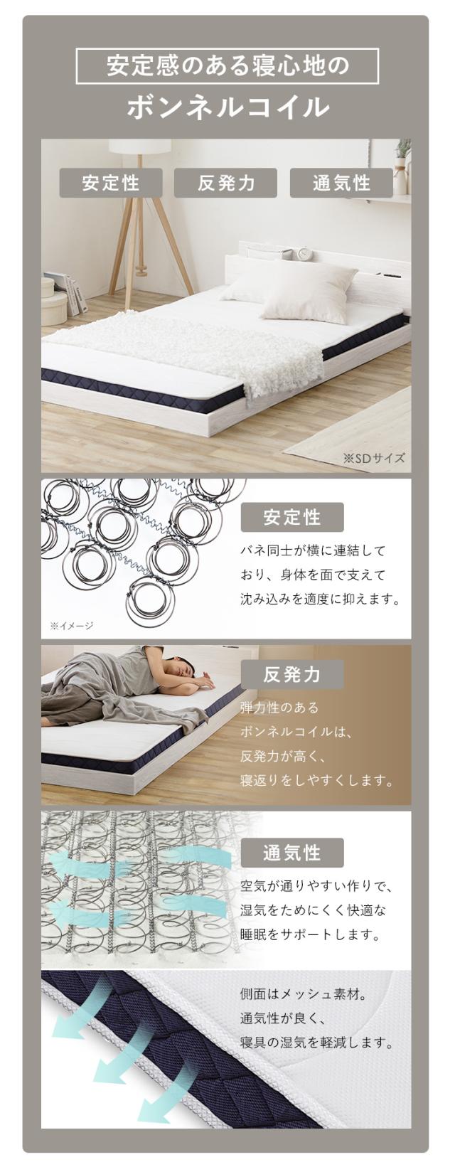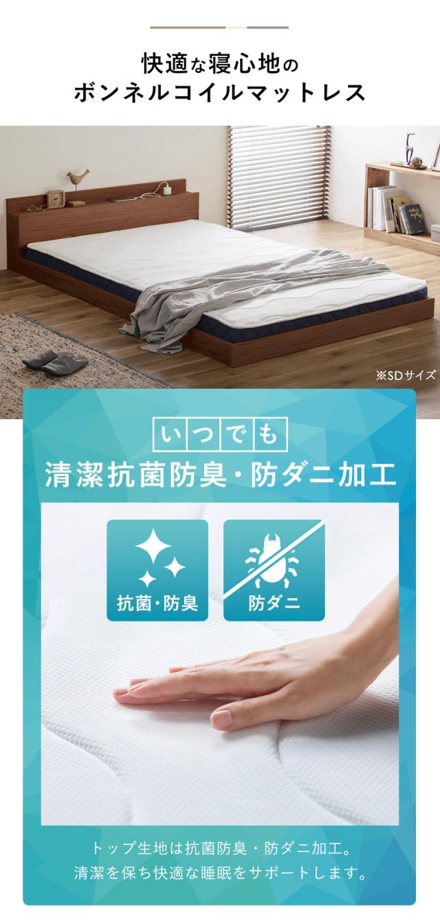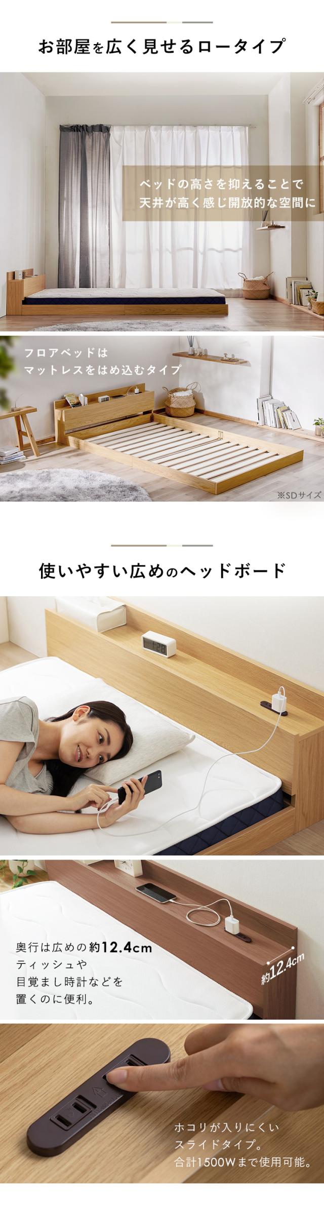 ベッド セミダブル マットレス付き マットレス フロアベッド ローベッド すのこ ベッドフレーム コンセント すのこベッド ベット 棚 棚付き 宮付き FBM-SD一人暮らし ひとり暮らし ワンルーム ボンネルコイル ナチュラル ブラウン アイリスオー