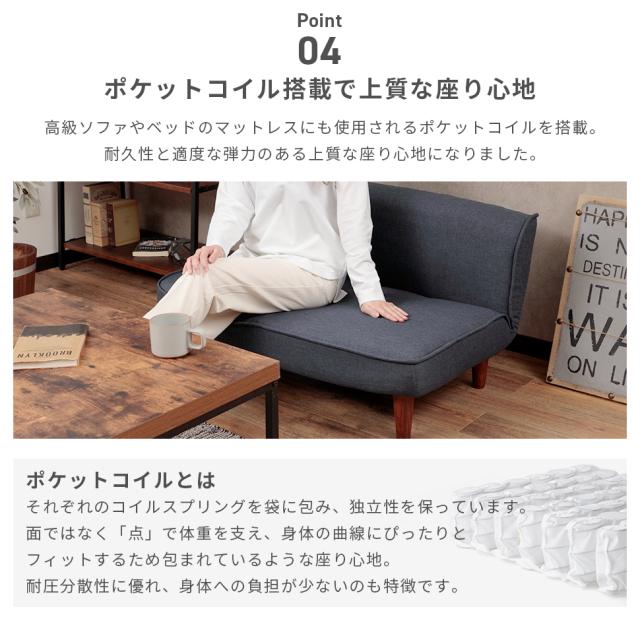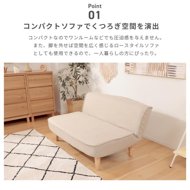 コンパクト ローバックソファ 幅100cm ポケットコイル入り 脚付き
