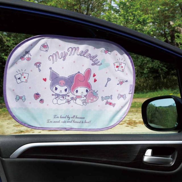 車用 貼り付くサンシェード マイメロディ・クロミ カワイイ ( カーサンシェード サイド用 窓 後部座席 貼るタイプ 日よけ 日除け UVカット 取り付け簡単 可愛い 子ども 車 夏 ドライブ かわいい マイメロ グッズ キャラクター )