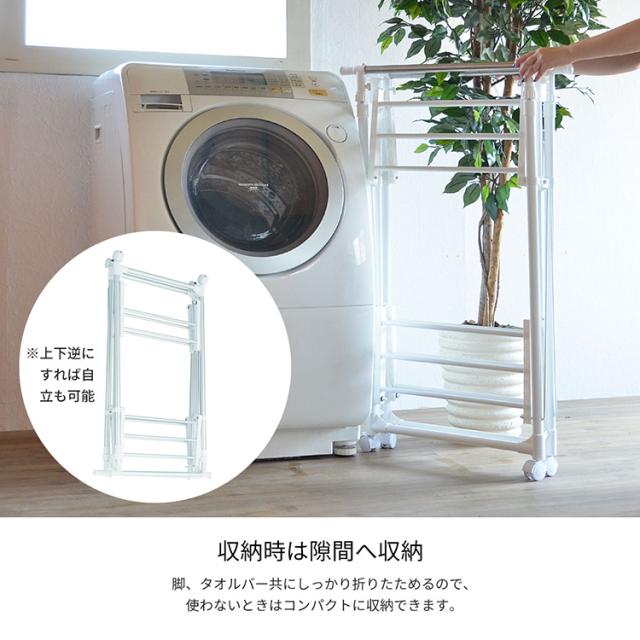 ワンタッチ収納洗濯物干しラック 2色対応 物干しスタンド 折り畳み 室内干し 洗濯物干し コンパクト 伸縮機能 大容量 物干し台 キャスター付き 洗濯用品 室内