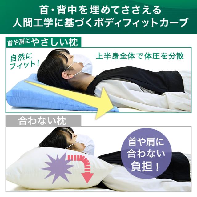 日本製 ロング フィット 枕 まくら 45×90cm ロング ・ 45×68cm セミロング 快眠 フィット 寝やすい枕 ななめ枕 低めの枕 安定形状枕 逆流食堂炎対策 子供 ジュニア 傾斜枕 いびき防止