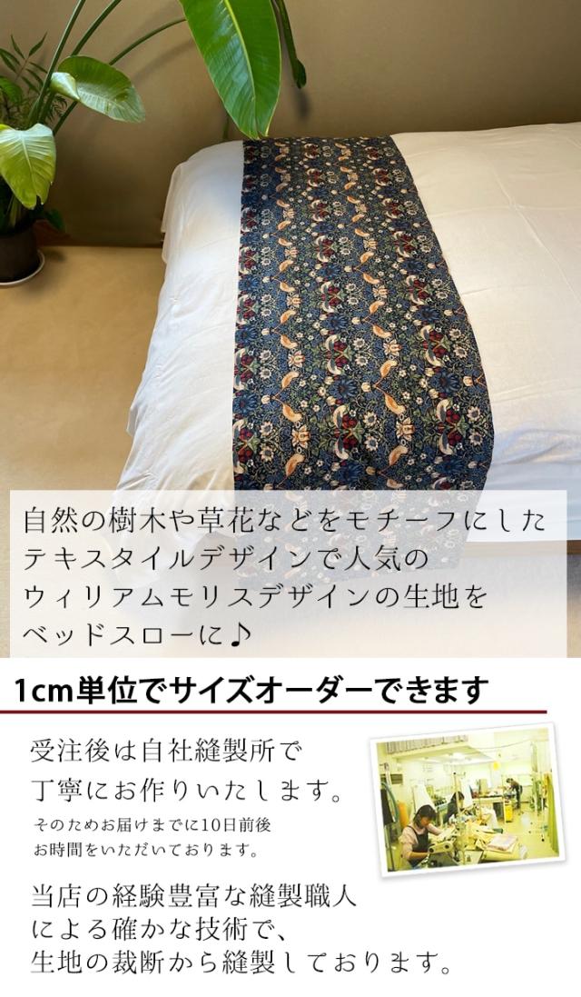 ベッドスロー おしゃれ サイズオーダー ベッドライナー (Y) 横300cm以内×縦80cm以内 ベッドカバー Fabric by BEST OF MORRIS 日本製 モリスデザイン 寝室 雑貨 モリス カバー プレゼント ギフト 厚手 オックスフォード いちご泥棒 オーダー 模様替え インテリア 北欧