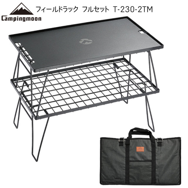 キャンピングムーン(CAMPING MOON) KAHKI フィールドラック カーキ色 グラウンドラック 折り畳みラック スチール製 収納バック付き 本体T-233 2点/アルミ天板2枚セット T-233-2T2M