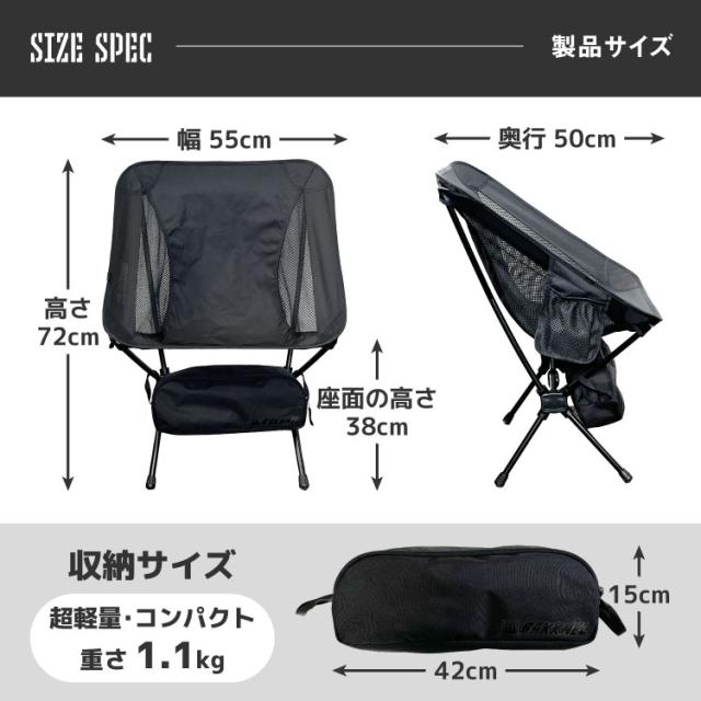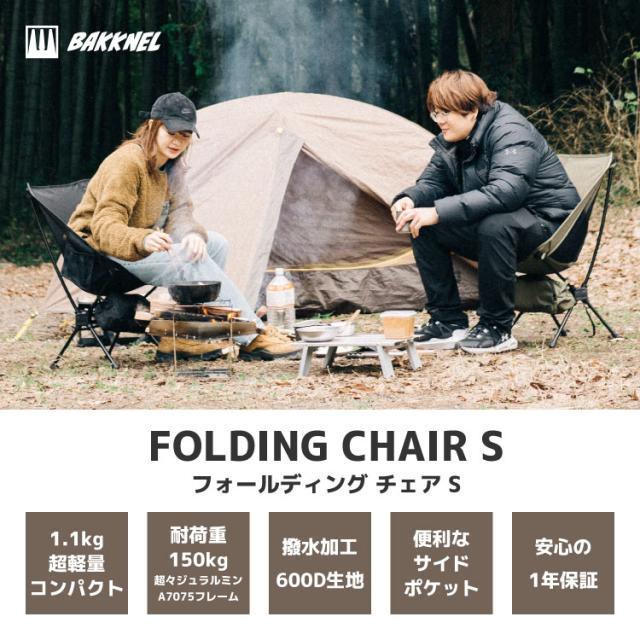 BAKKNEL バクネル BN-ISU001フォールディングチェアS 折りたたみ チェア 椅子 軽量 コンパクト アウトドア ポケット付き 撥水 収納バッグ