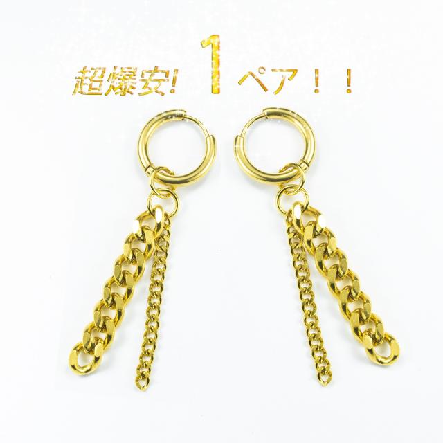 ピアス フープピアス アレルギー対応 イヤリング ステンレスピアス メンズ レディース チェーン 金色 ゴールド フープピアス ステンレス 金属アレルギー