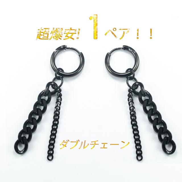ピアス フープピアス アレルギー対応 イヤリング ステンレスピアス メンズ レディース チェーン 黒色 ブラック フープピアス ステンレス 金属アレルギー
