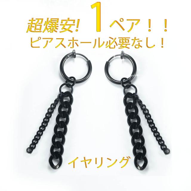 イヤリング ノンホールピアス フェイクピアス メンズ レディース ステンレス 送料無料 金属アレルギー 対応 黒色 ブラック チェーン