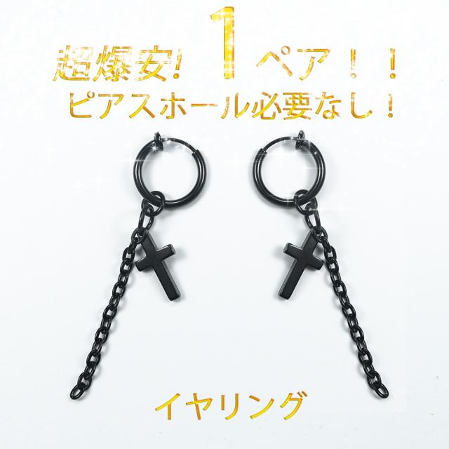 イヤリング イヤーカフ フェイクピアス ノンホールピアス ステンレス 金属アレルギー 対応 リング フープ 黒 十字架 クロス チェーン