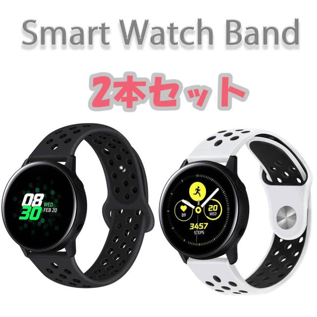 2本セット スマートウォッチ 替えバンド バンド ベルト 20mm 20 mm シリコン バンドのみ スポーツ 運動 時計バンド メッシュ 白 黒 灰色